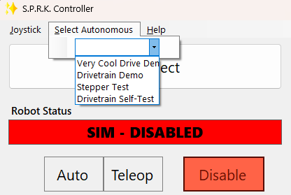 The autonomous selector dropdown As soon as any option is picked, the DS will send the name of the routine prefixed by se-auto to the robot.
